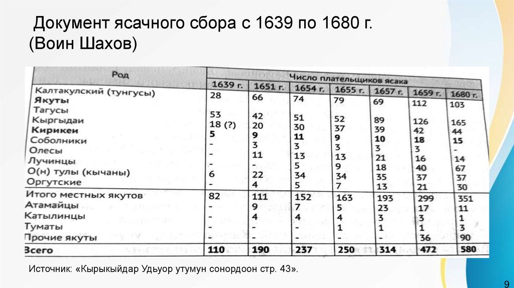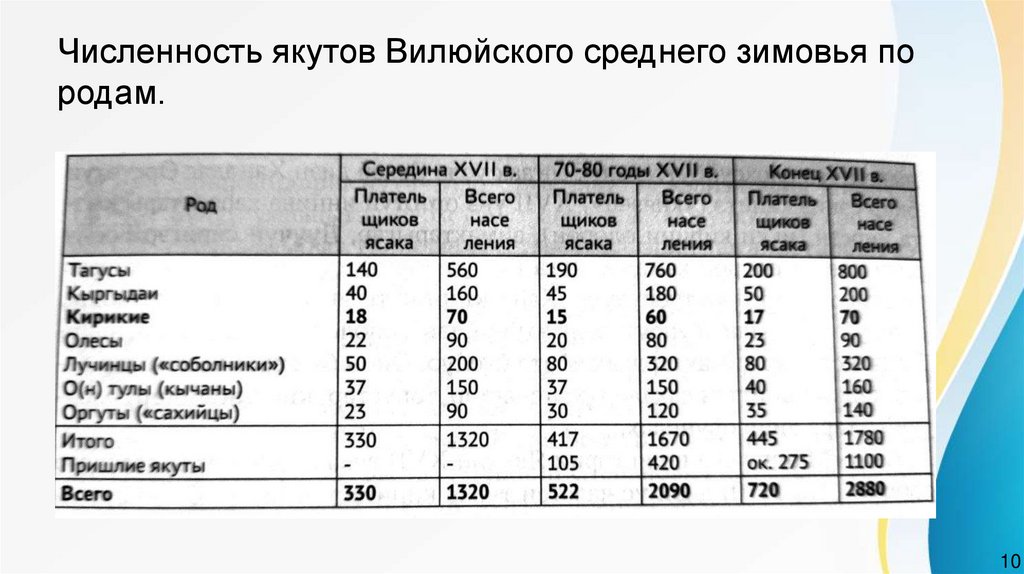 якутских родовых груп в 18 и 19 веках. Эти данные отрывочны и