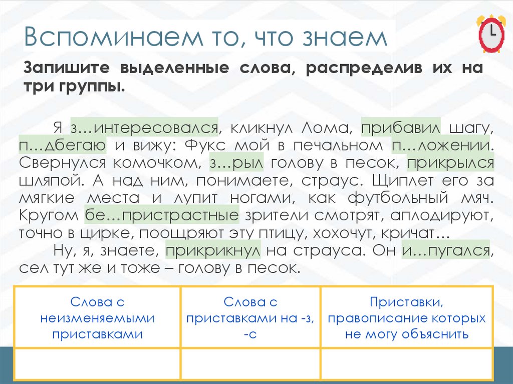 Вспоминаем то, что знаемЗапишите выделенные слова, распределив их на