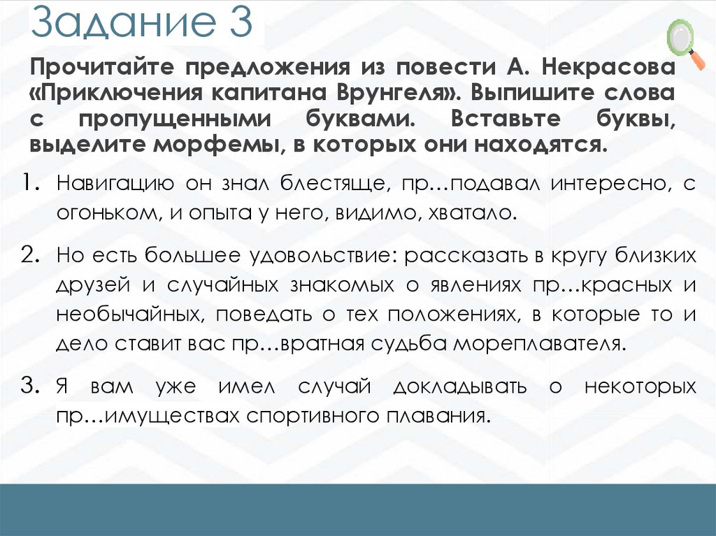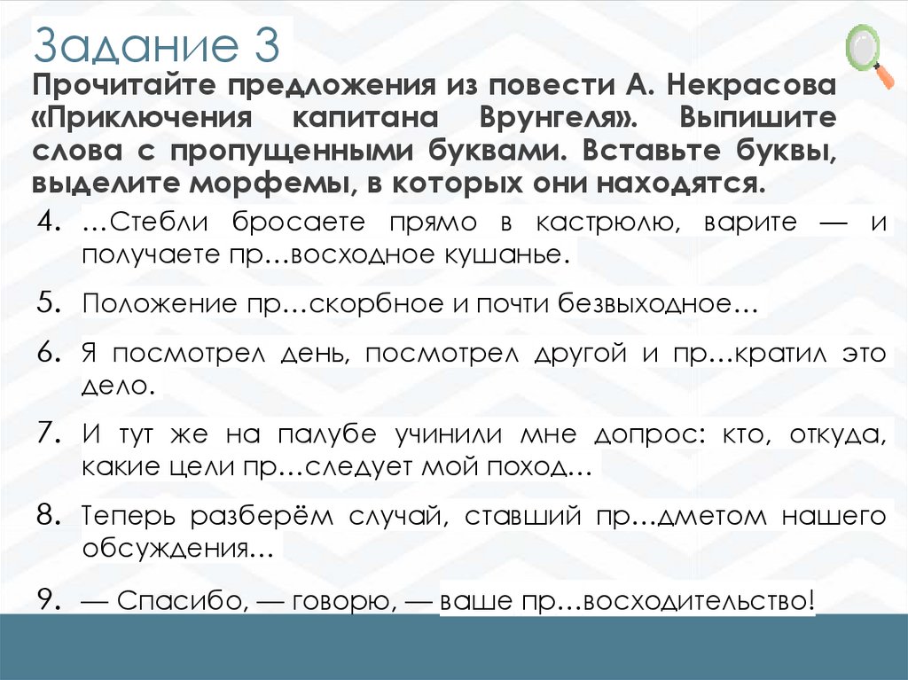 Задание 3Прочитайте предложения из повести А. Некрасова