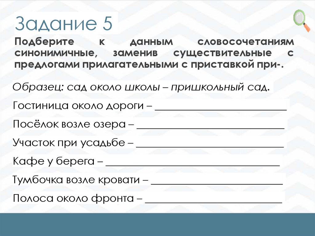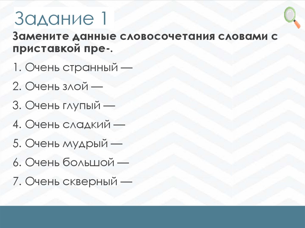 Задание 1Замените данные словосочетания словами с