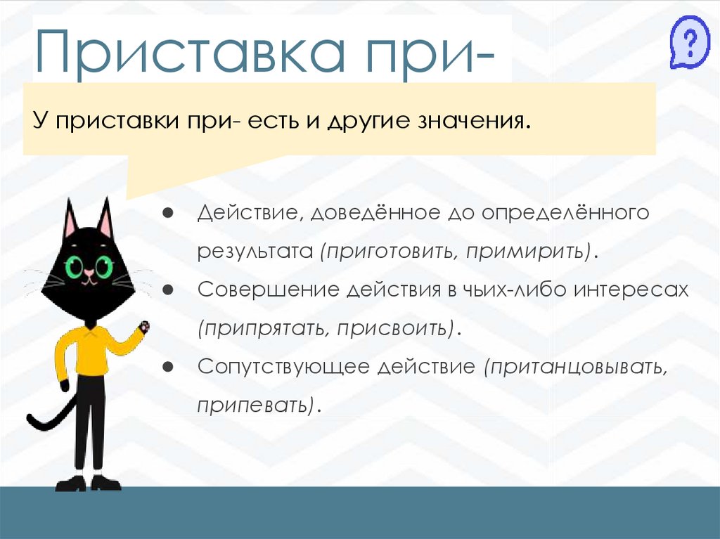 Приставка приУ приставки при- есть и другие значения.● Действие, доведённое до определённого