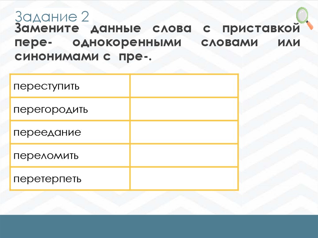 Задание 2Замените данные слова с приставкой