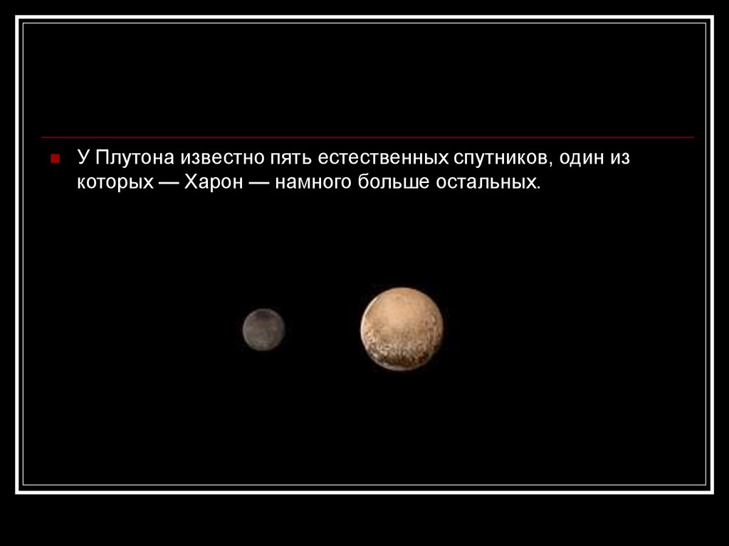 У Плутона известно пять естественных спутников, один изкоторых — Харон — намного больше остальных.