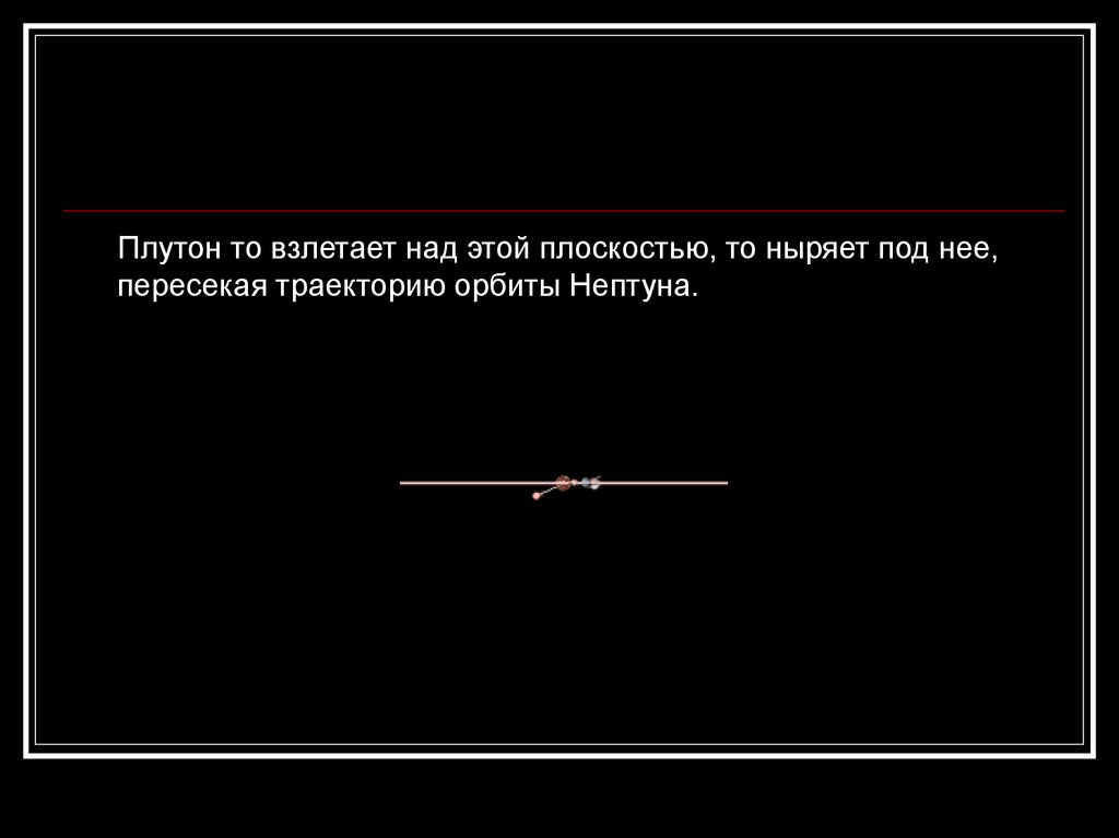 Плутон то взлетает над этой плоскостью, то ныряет под нее,пересекая траекторию орбиты Нептуна.