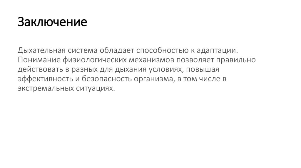 ЗаключениеДыхательная система обладает способностью к адаптации.