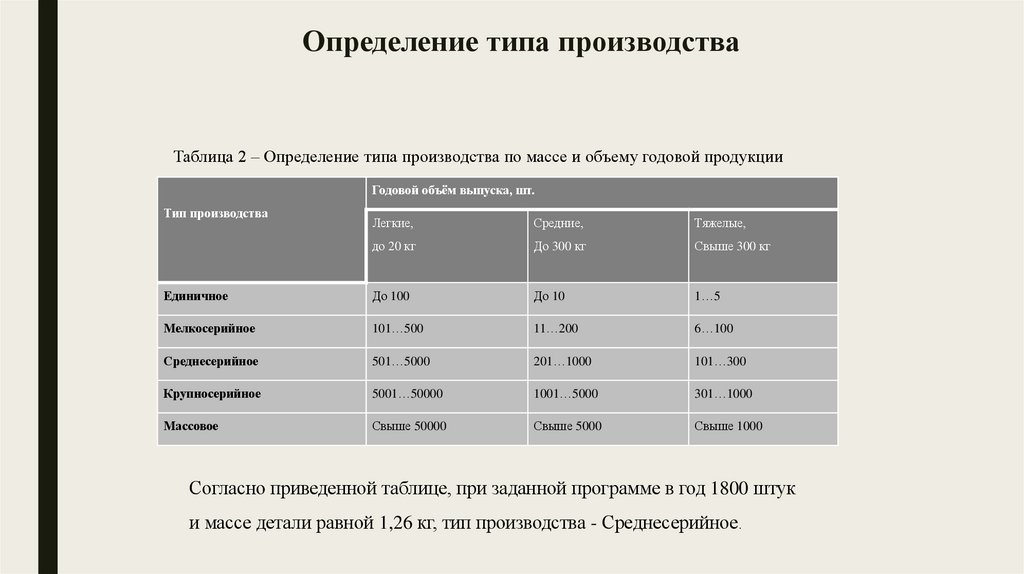 Таблица 2 – Определение типа производства по массе и объему годовой продукцииГодовой объём выпуска, шт.