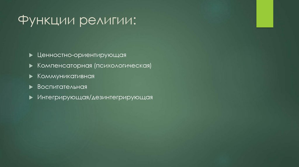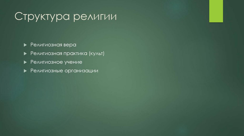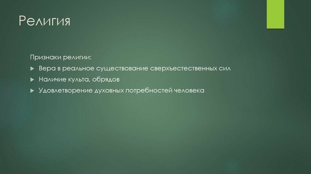 Признаки религии:Вера в реальное существование сверхъестественных сил