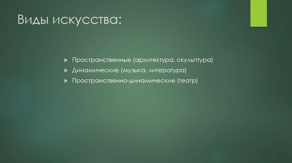 Пространственные (архитектура, скульптура)Динамические (музыка, литература)