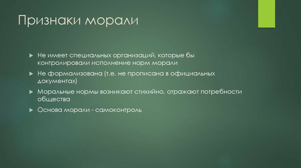 Не имеет специальных организаций, которые быконтролировали исполнение норм морали