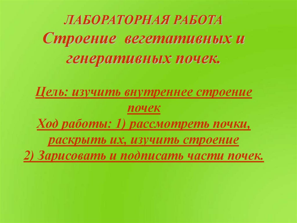 ЛАБОРАТОРНАЯ РАБОТАСтроение вегетативных и