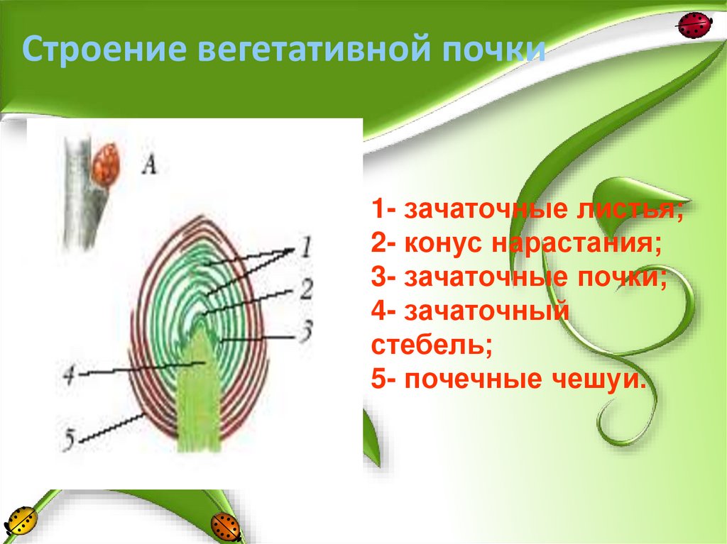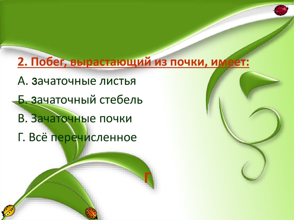2. Побег, вырастающий из почки, имеет:А. зачаточные листья