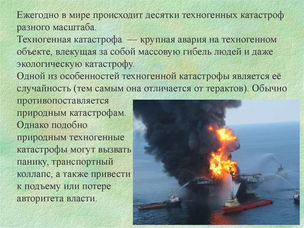 Ежегодно в мире происходит десятки техногенных катастрофразного масштаба.