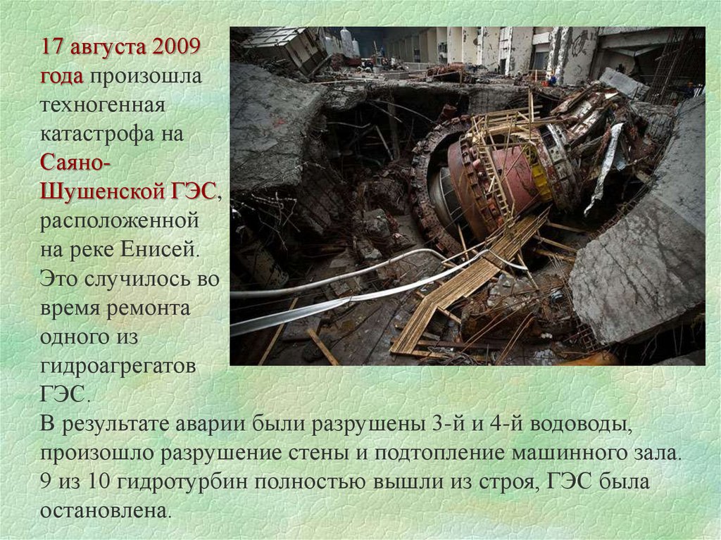 Ущерб от аварии на Саяно-Шушенской ГЭС превысил 7.3миллиарда рублей, включая ущерб экологии. На днях в