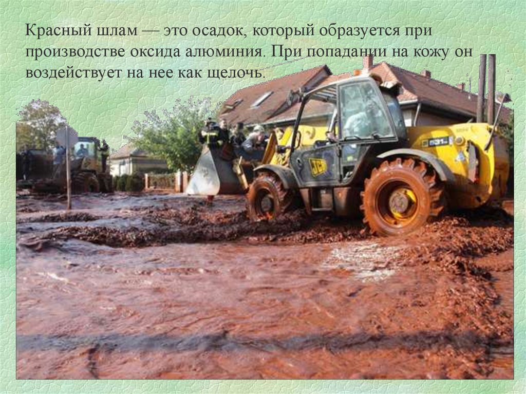 Красный шлам — это осадок, который образуется припроизводстве оксида алюминия. При попадании на кожу он