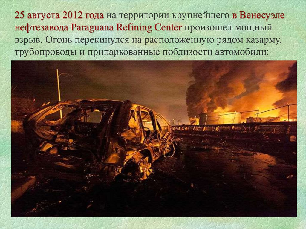 25 августа 2012 года на территории крупнейшего в Венесуэленефтезавода Paraguana Refining Center произошел мощный