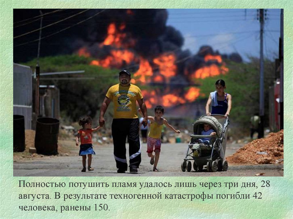 Полностью потушить пламя удалось лишь через три дня, 28августа. В результате техногенной катастрофы погибли 42