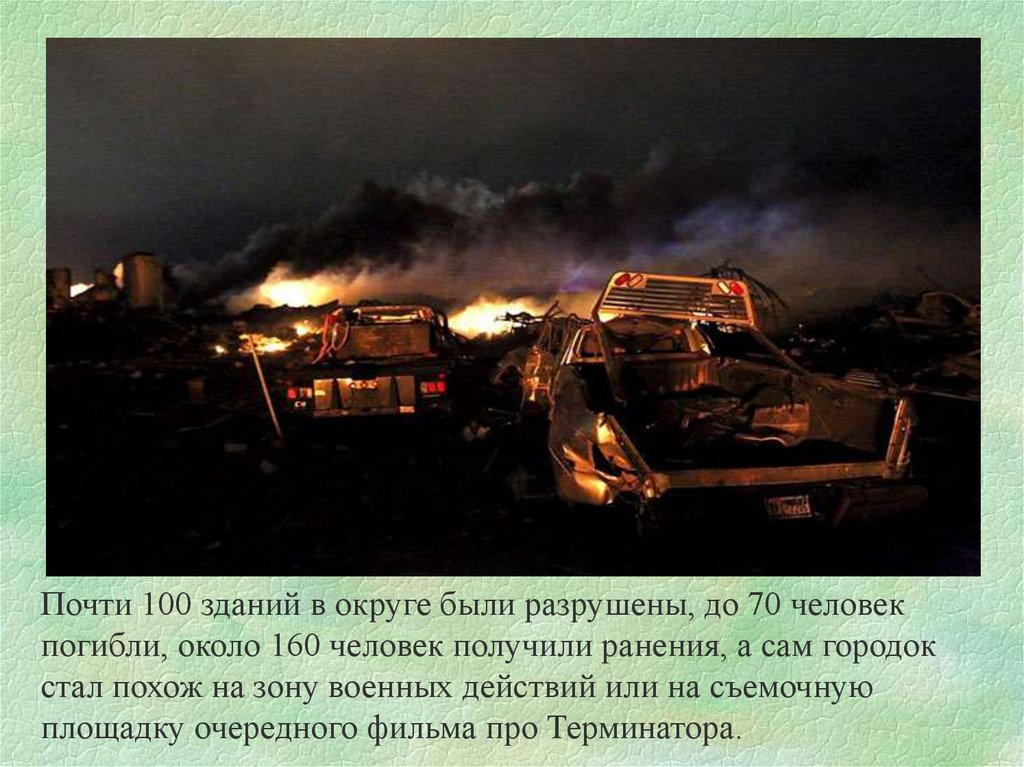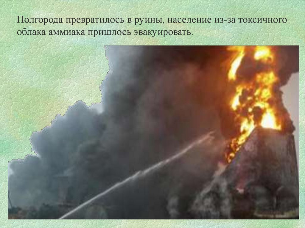 Полгорода превратилось в руины, население из-за токсичногооблака аммиака пришлось эвакуировать.