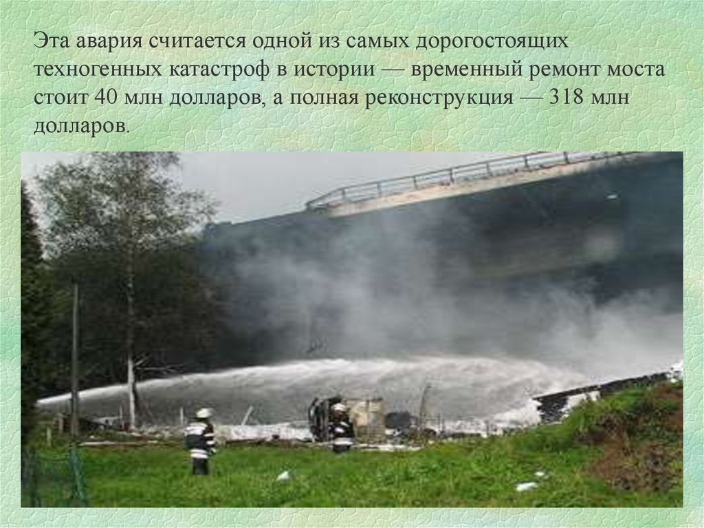 Эта авария считается одной из самых дорогостоящихтехногенных катастроф в истории — временный ремонт моста