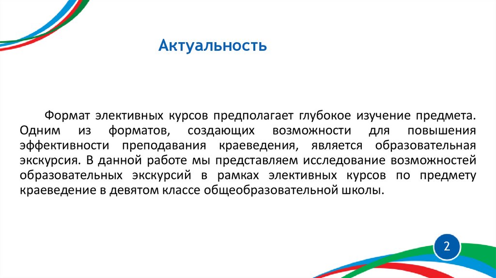 АктуальностьФормат элективных курсов предполагает глубокое изучение предмета.