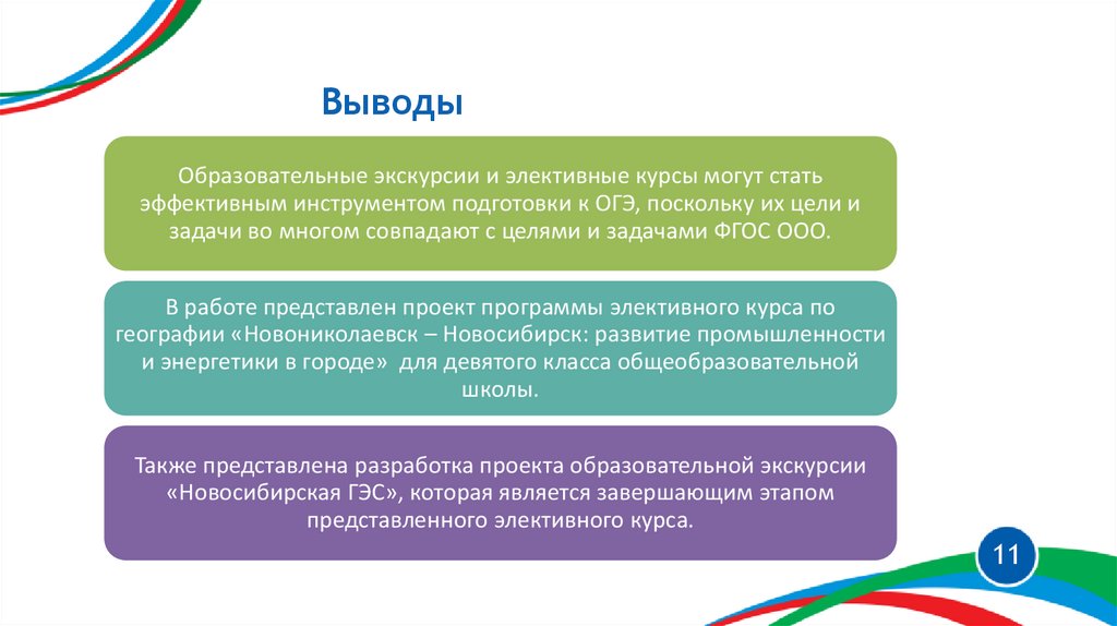 ВыводыОбразовательные экскурсии и элективные курсы могут стать