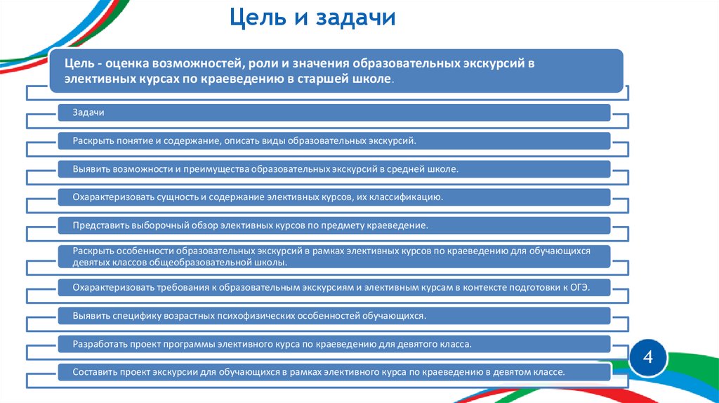 Цель и задачиЦель - оценка возможностей, роли и значения образовательных экскурсий в