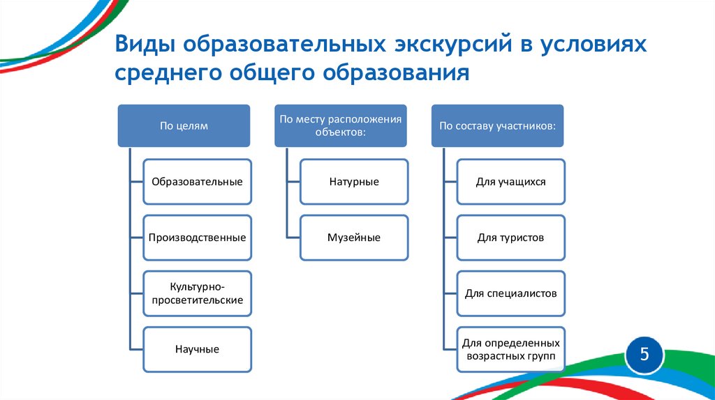 Виды образовательных экскурсий в условияхсреднего общего образования