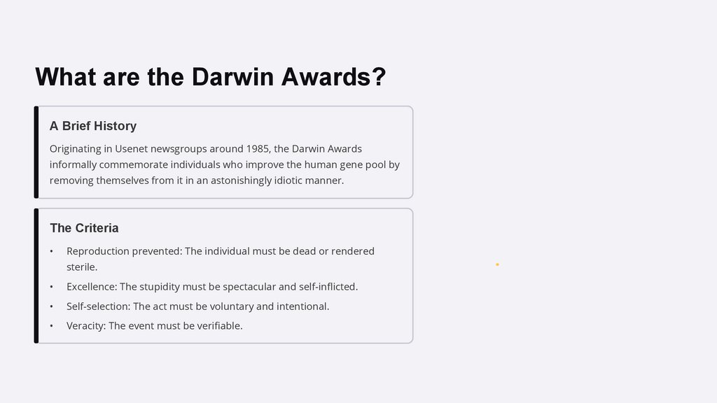 Originating in Usenet newsgroups around 1985, the Darwin Awards
