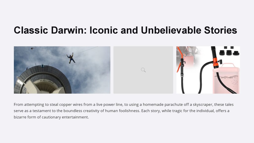 Classic Darwin: Iconic and Unbelievable StoriesFrom attempting to steal copper wires from a live power line, to using a homemade parachute off a skyscraper, these tales