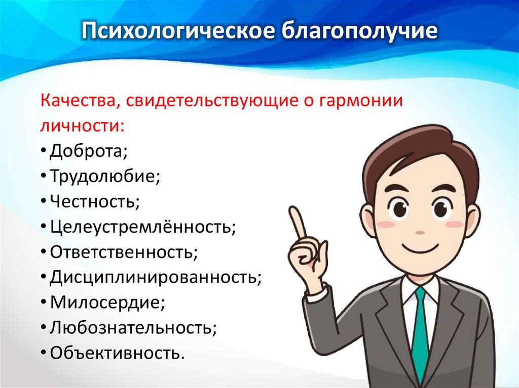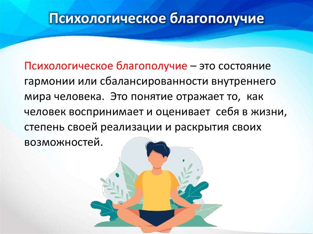 Психологическое благополучие – это состояниегармонии или сбалансированности внутреннего