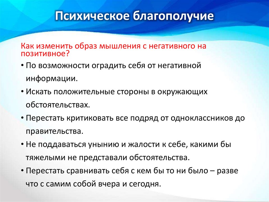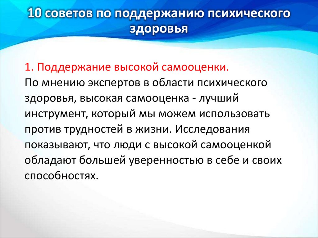 1. Поддержание высокой самооценки.По мнению экспертов в области психического