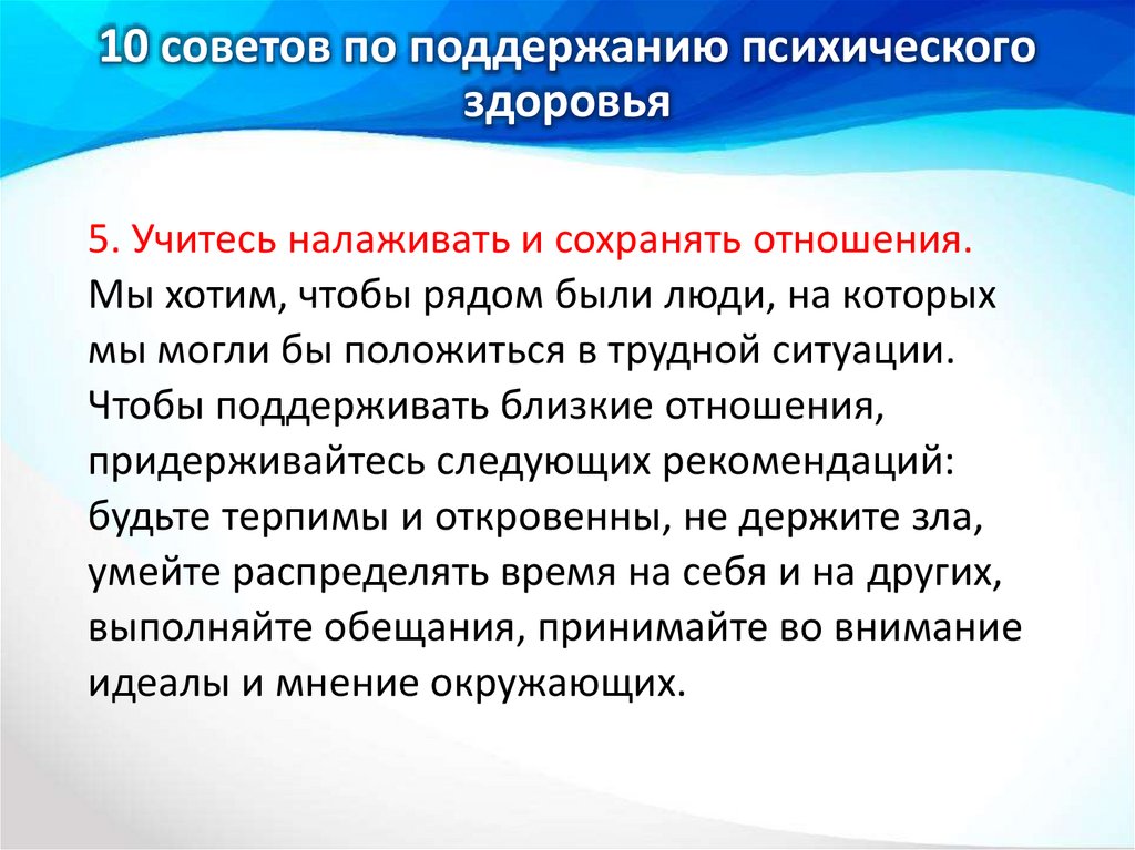 5. Учитесь налаживать и сохранять отношения.Мы хотим, чтобы рядом были люди, на которых