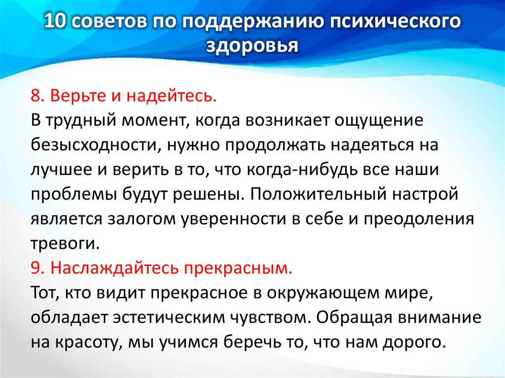 8. Верьте и надейтесь.В трудный момент, когда возникает ощущение