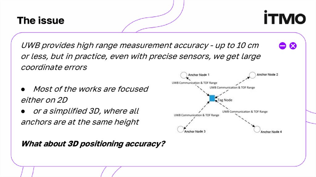 UWB provides high range measurement accuracy - up to 10 cmor less, but in practice, even with precise sensors, we get large