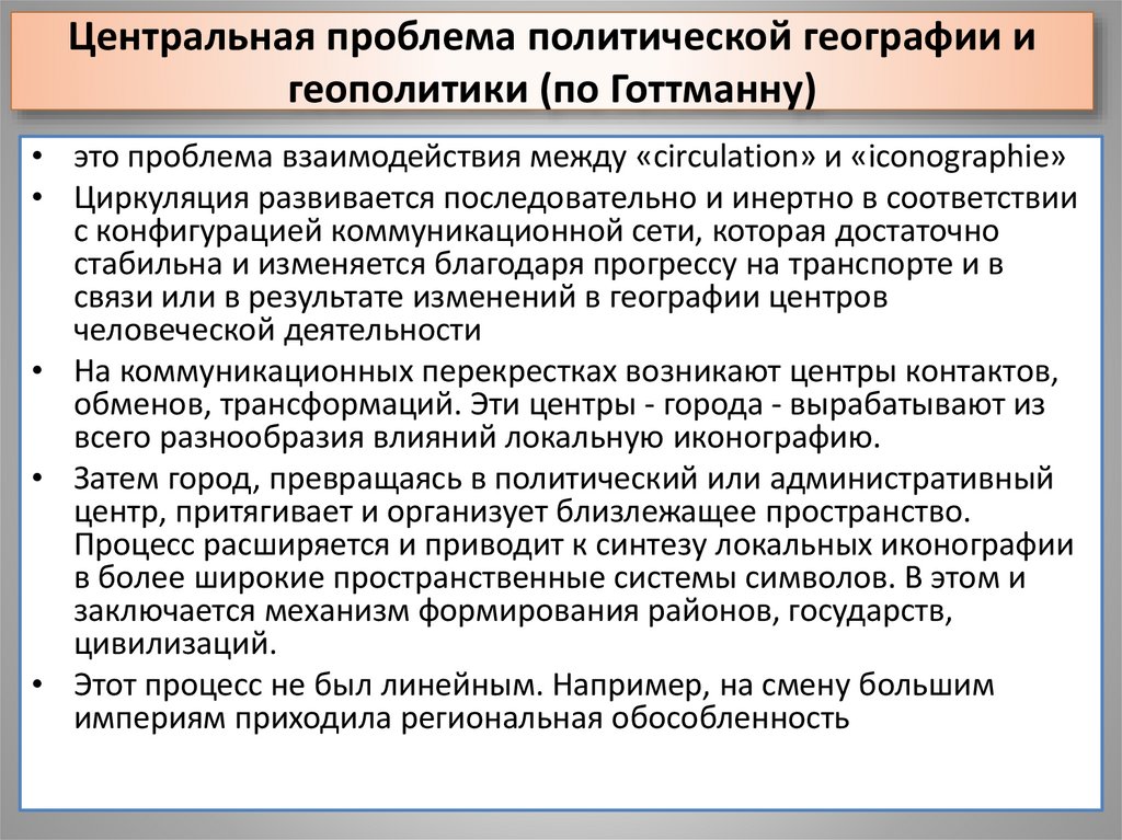 21. Центральная проблема политической географии и геополитики (по Готтманну)