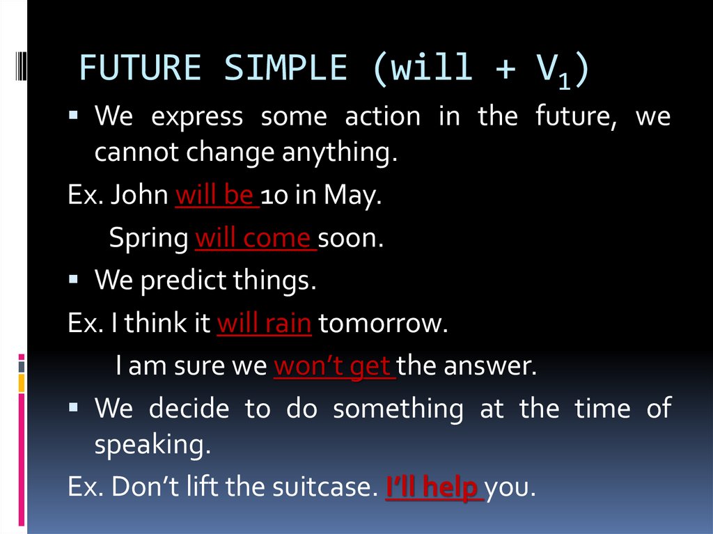 TENSES AND FORMSTO DESCRIBE FUTURE EVENTS