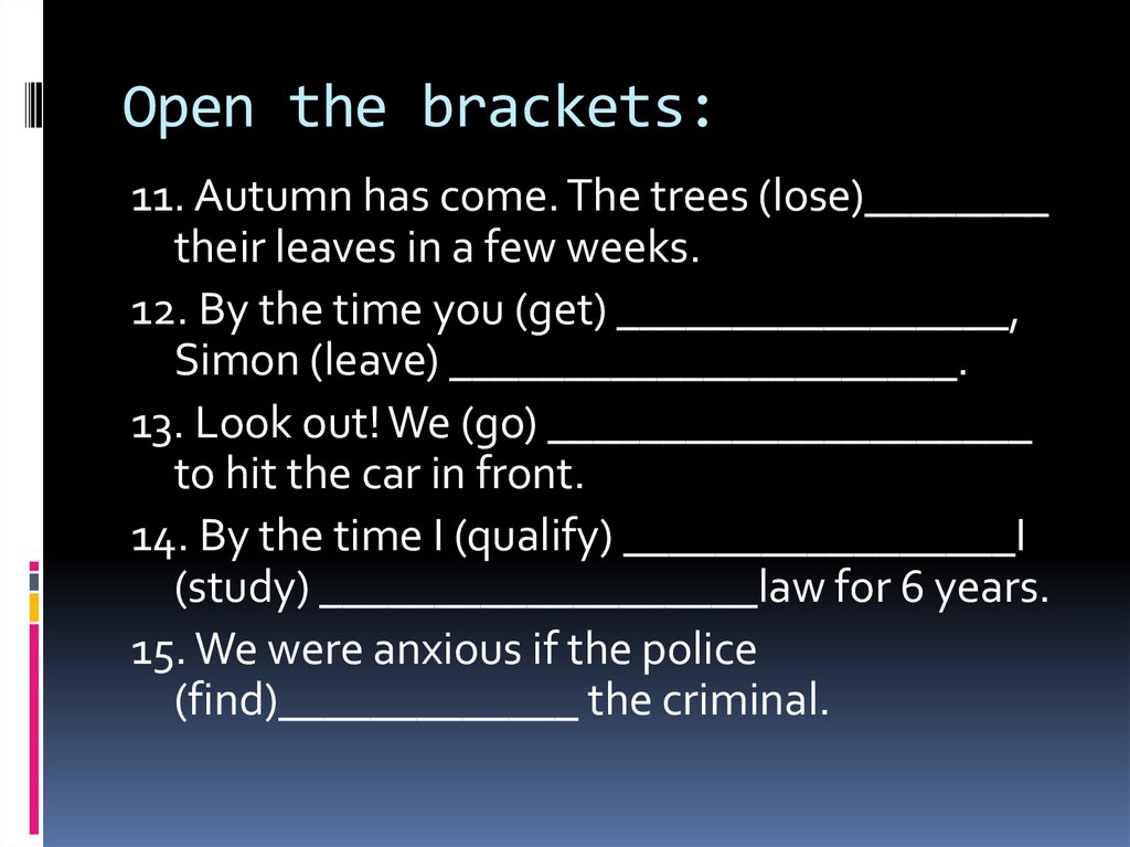 11. Autumn has come. The trees (lose)________their leaves in a few weeks.