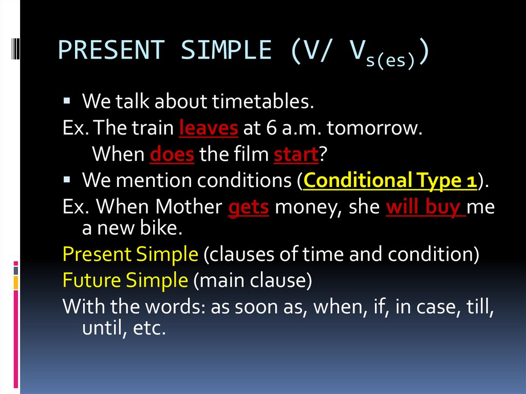 We talk about timetables.Ex. The train leaves at 6 a.m. tomorrow.