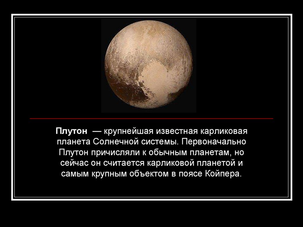 Плутон — крупнейшая известная карликоваяпланета Солнечной системы. Первоначально