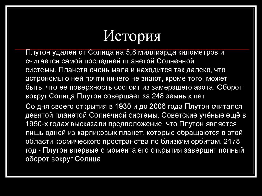ИсторияПлутон удален от Солнца на 5,8 миллиарда километров и