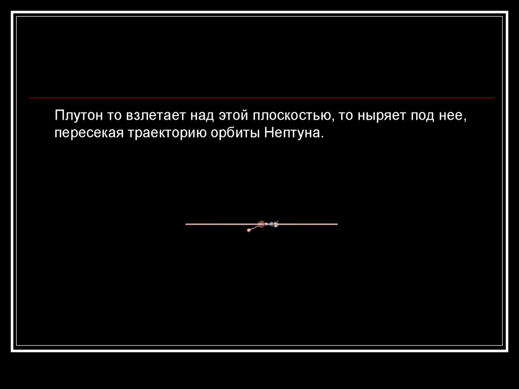 Плутон то взлетает над этой плоскостью, то ныряет под нее,пересекая траекторию орбиты Нептуна.