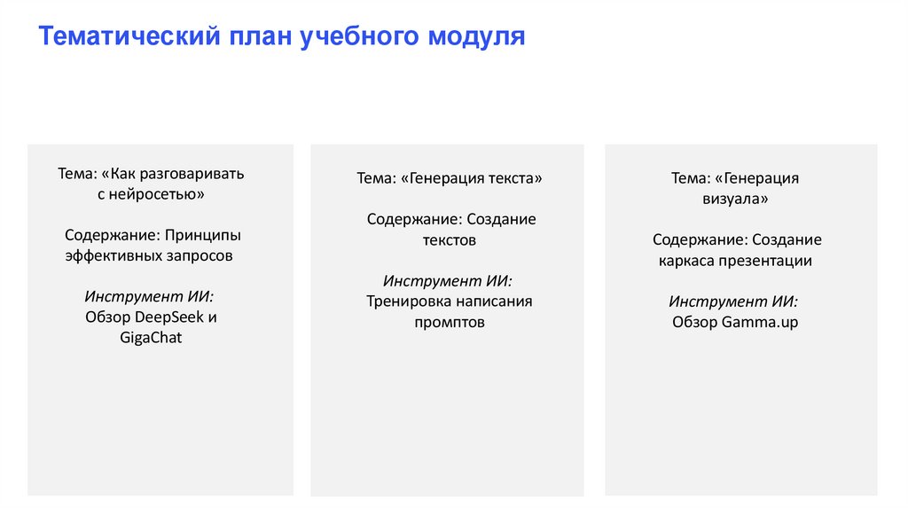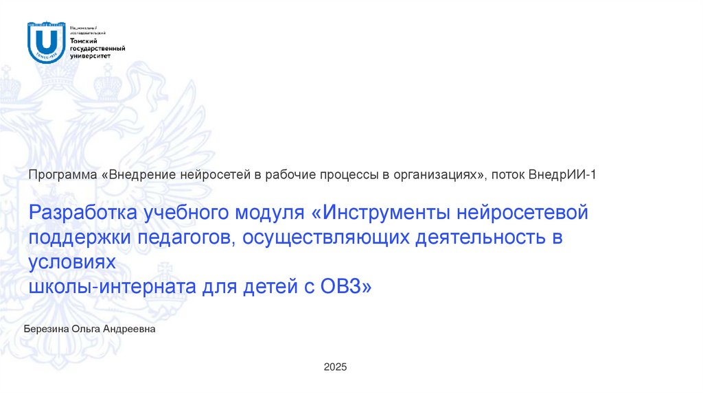 Программа «Внедрение нейросетей в рабочие процессы в организациях», поток ВнедрИИ-1Разработка учебного модуля «Инструменты нейросетевой