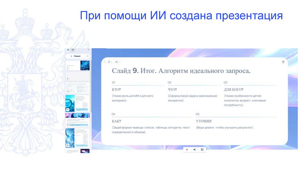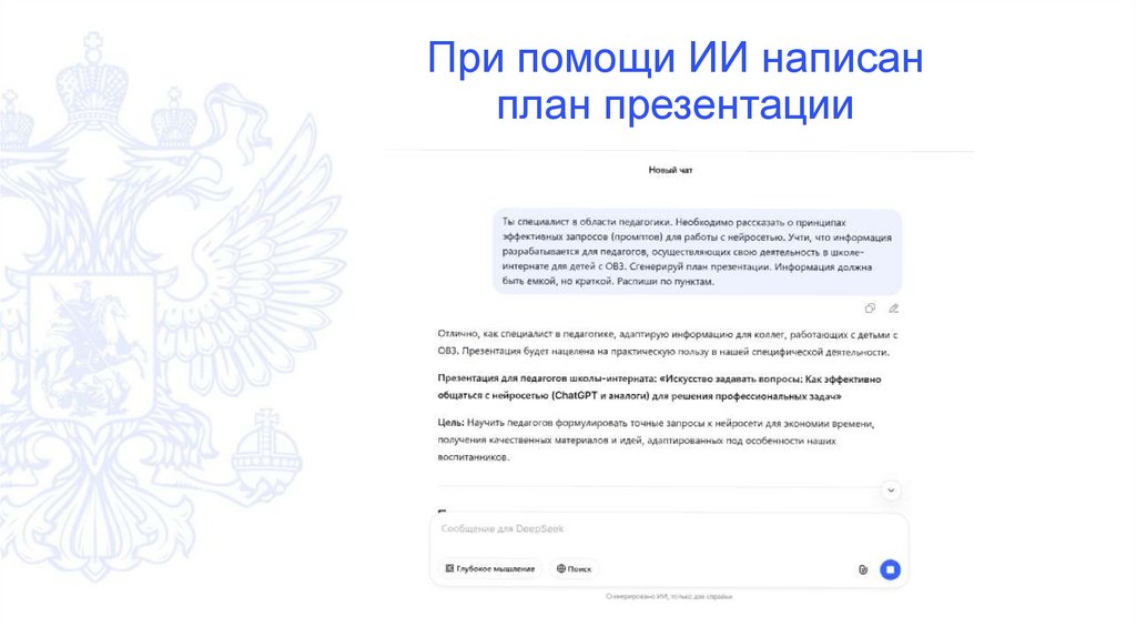 При помощи ИИ написанплан презентации