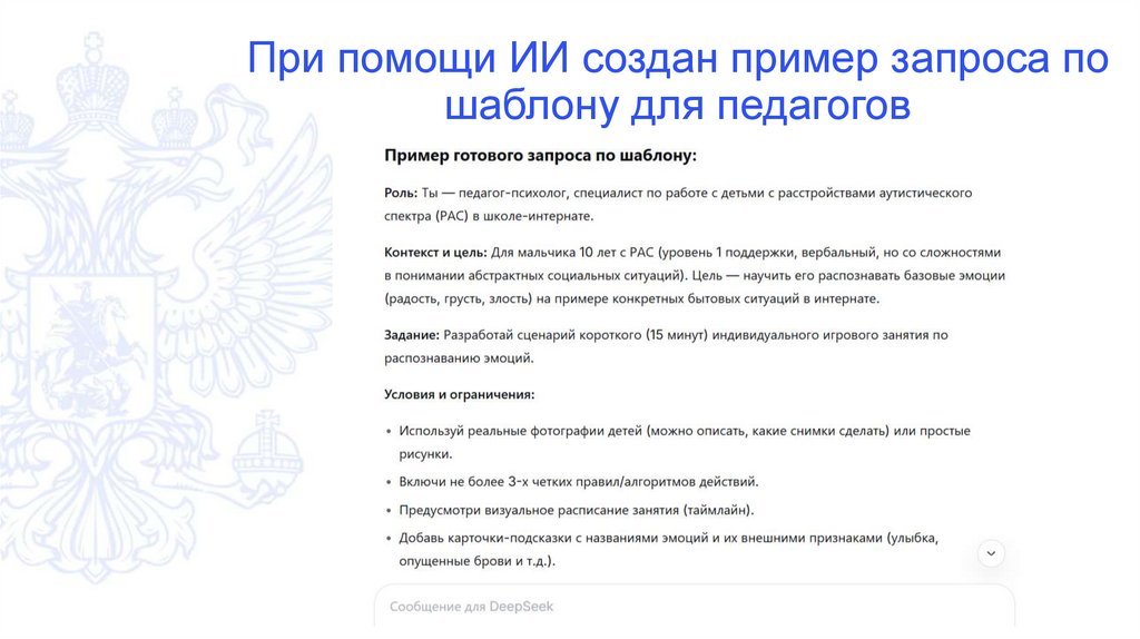 При помощи ИИ создан пример запроса пошаблону для педагогов