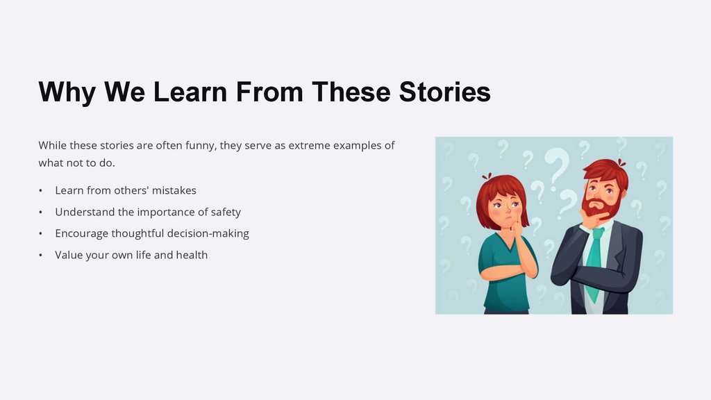 Why We Learn From These StoriesWhile these stories are often funny, they serve as extreme examples of