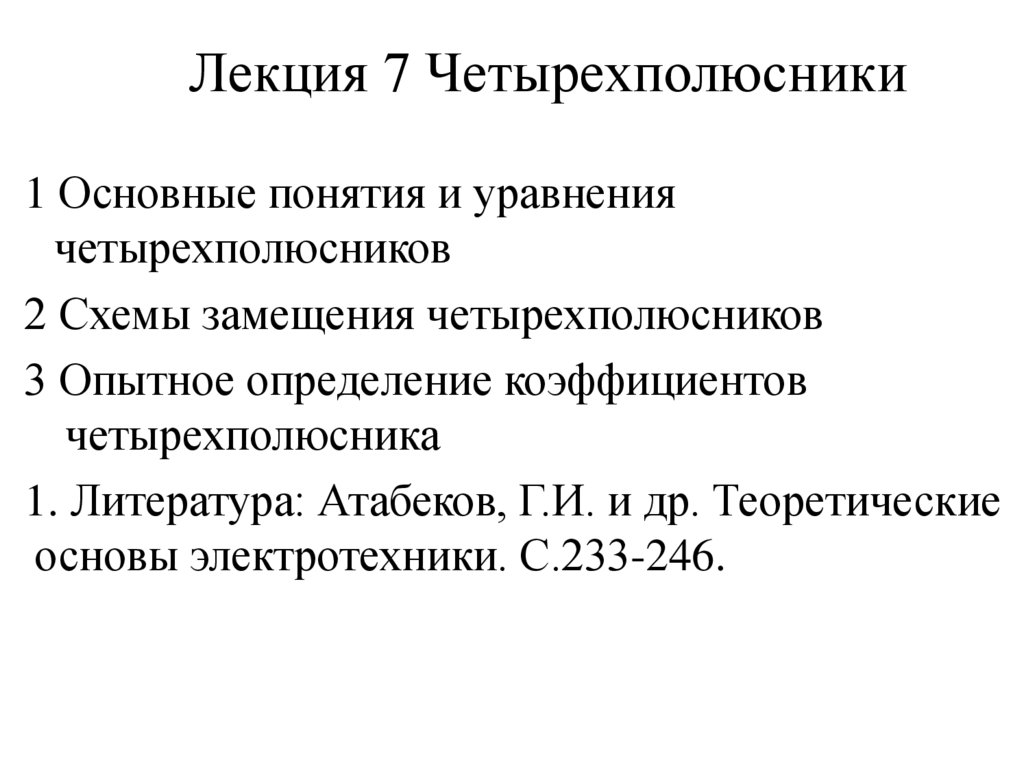 1. Литература: Атабеков, Г.И. и др. Теоретические
