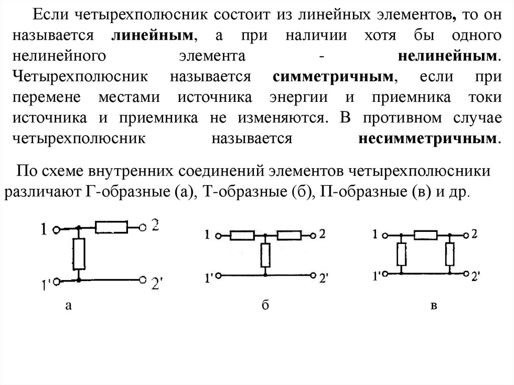 3. Если четырехполюсник состоит из линейных элементов, то он называется линейным, а при наличии хотя бы одного нелинейного