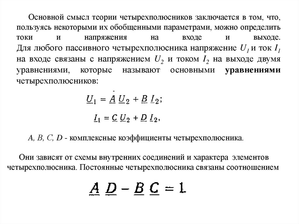 А, В, С, D - комплексные коэффициенты четырехполюсника.