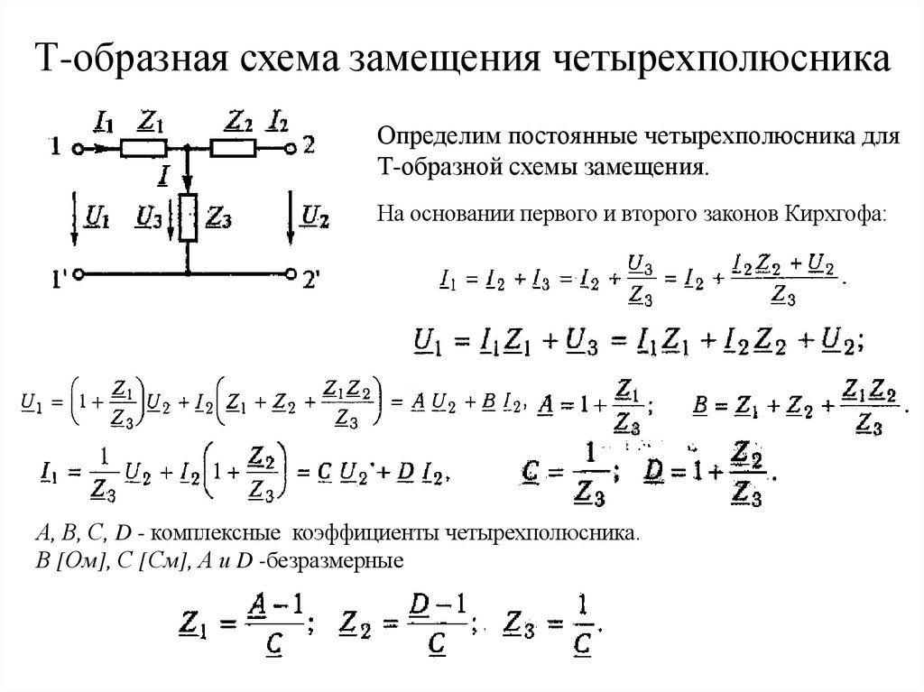 Определим постоянные четырехполюсника дляТ-образной схемы замещения.