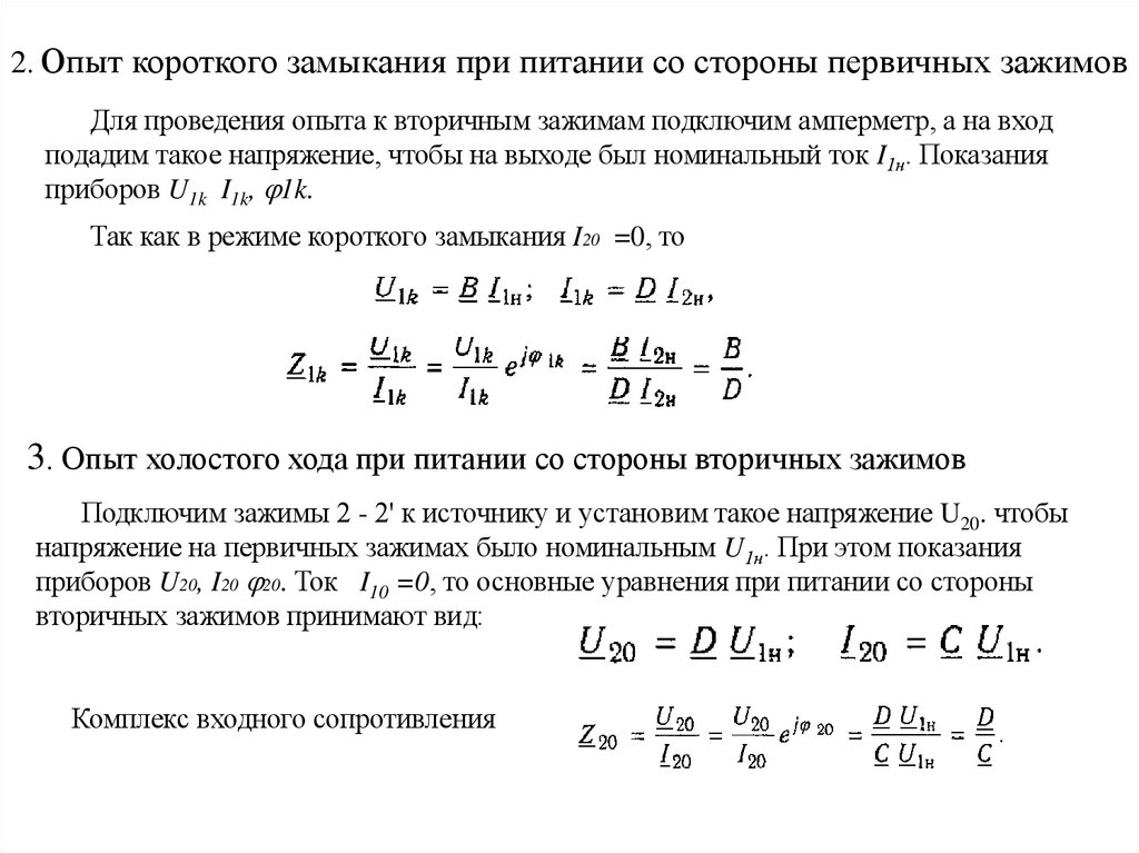 на входе связаны с напряжением U2 и током I2 на выходе двумя