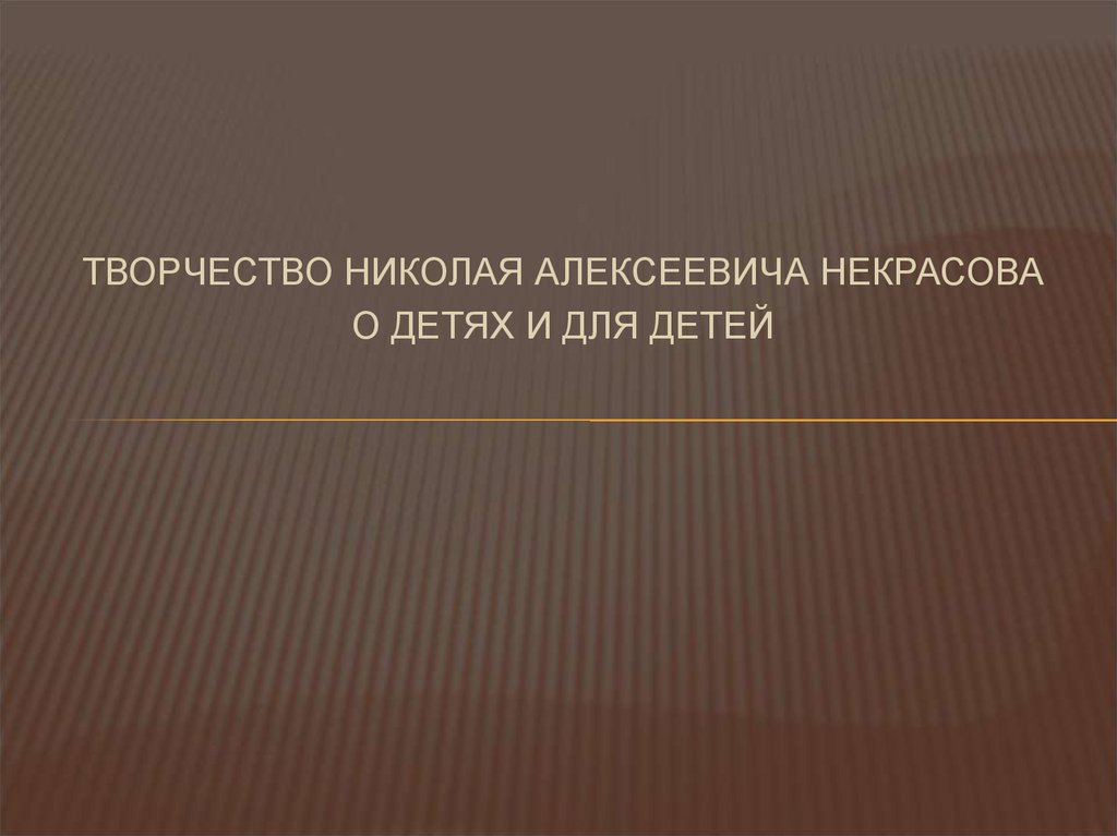 ТВОРЧЕСТВО НИКОЛАЯ АЛЕКСЕЕВИЧА НЕКРАСОВАО ДЕТЯХ И ДЛЯ ДЕТЕЙ